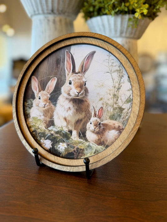 Round Framed 3 Bunny Art