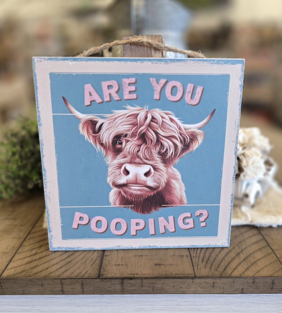 “Are You Pooping?” Highland Cow Sign 🚽🐮