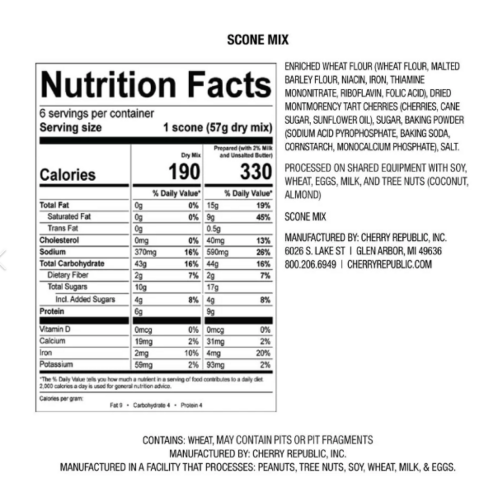 Create bakery-quality scones in the comfort of your own kitchen. Fluffy scones bursting with cherry goodness. Simply mix with 10 tablespoons of butter, and a half cup of milk, bake and enjoy the aroma of freshly baked scones that are sure to elevate any occasion.