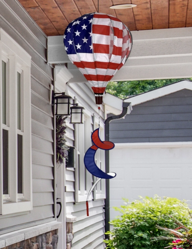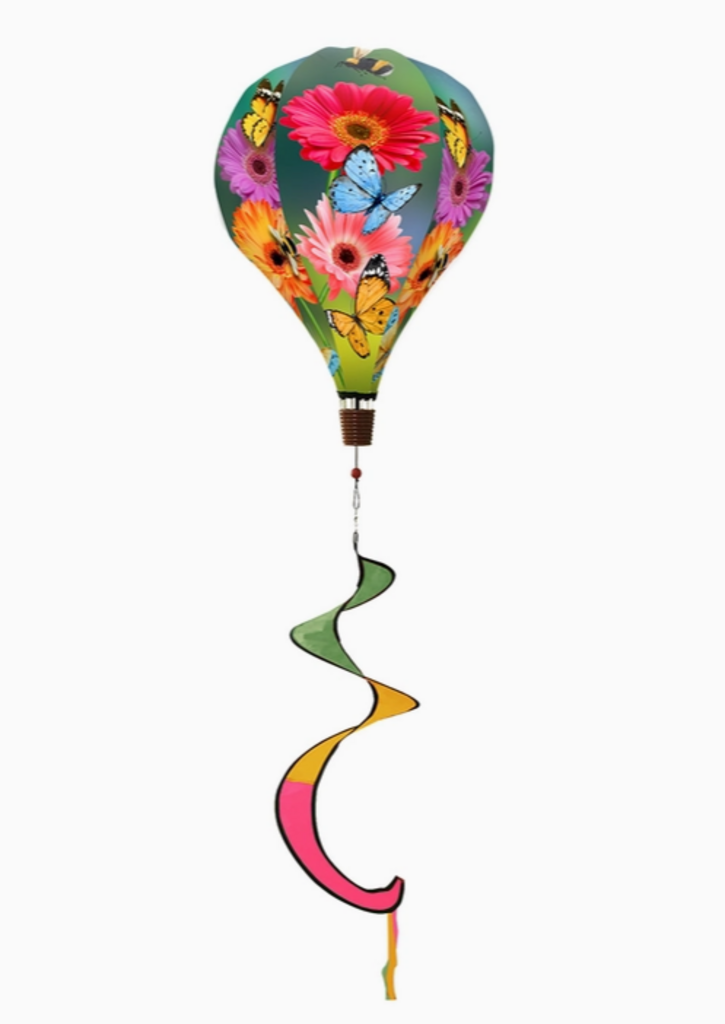 Add a colorful, welcoming touch of the season to your home and garden with a wind twister. Made of weather resistant polyester material, our wind twisterss have the ability to spin in the breeze. At rest they are approximately 54" long from top of balloon to bottom of tail with a diameter of approximately 12".