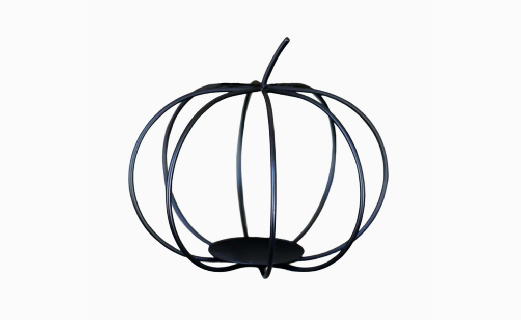Bring in that autumn breeze and fall vibes with this large decorative piece from our collection. This Large Metal Pumpkin with Candle Holder can be used as a purely ornamental piece or a functional candle holder with an interesting design! Dark metal frame of a pumpkin with a base meant to house an LED or real candle. It's a timeless classic!
