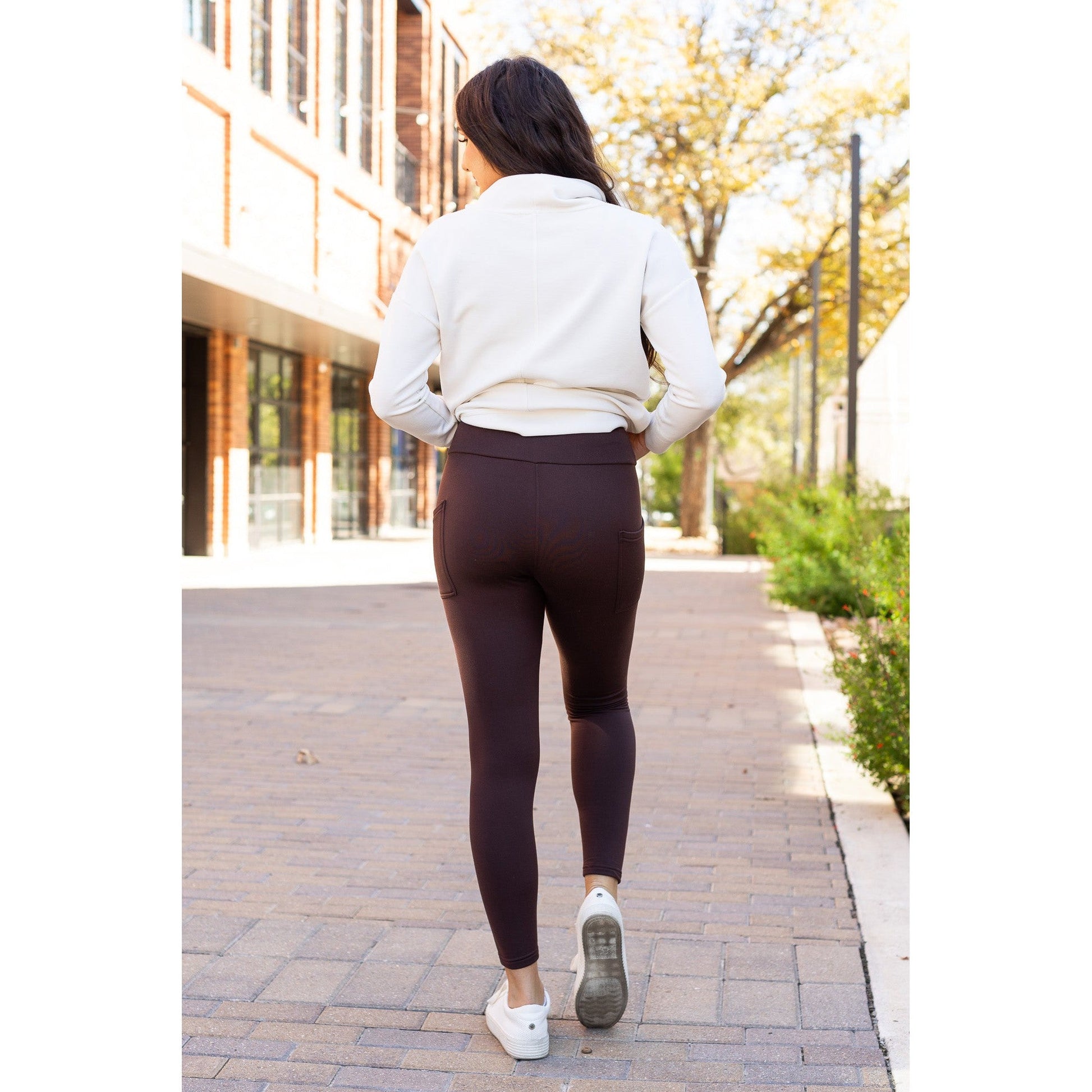 Ready to Ship | The Belle - Brown FLEECE Full Length Leggings with Pockets*