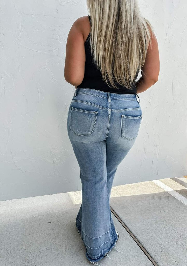 THREE WORDS! TUMMY. CONTROL.PANNEL. We are SO excited to not only launch these stretchy, non-distressed flares, BUT, having a tummy control panel is a game changer!
