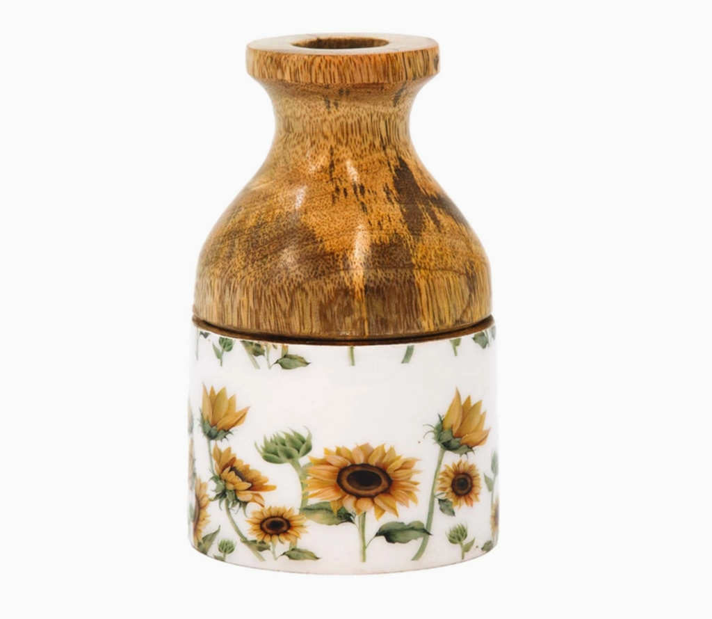 Sunflower Enamel Wood Vase