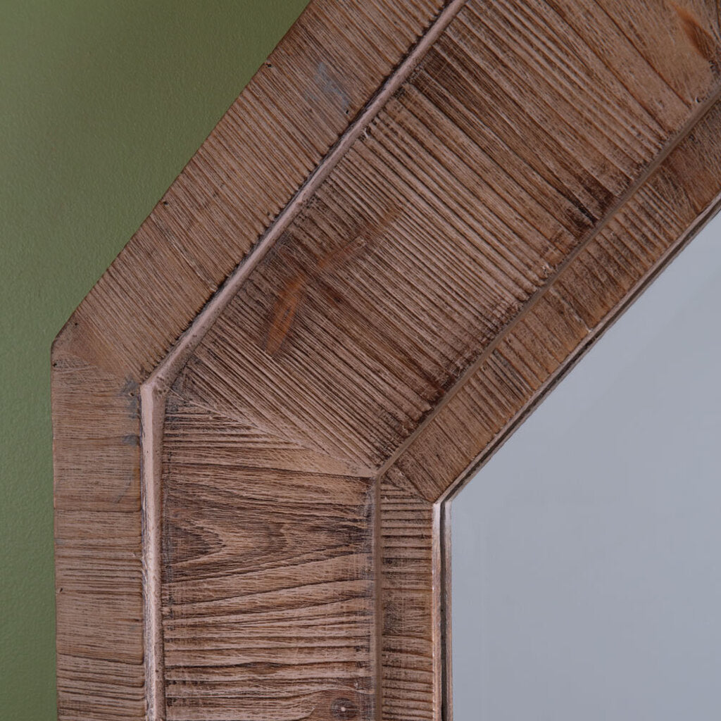 Guest may linger a little longer to stare when walking past this impressive mirror. Chiseled with detail and made with fir wood it is sure to be a show-stopper. This mirror will make your space feel bright and open.